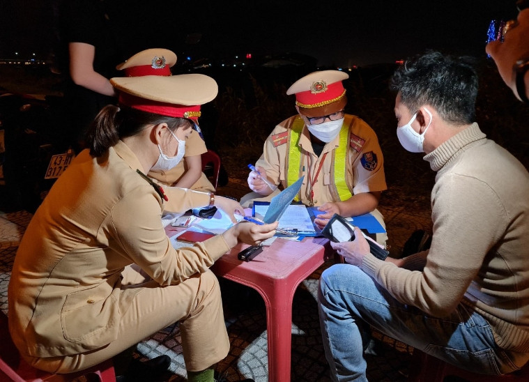 Đến gần 22h cùng ngày, lực lượng tiếp tục dừng ô tô BKS 92A-282.xx do ông N.C (SN 1973, trú thị xã Điện Bàn, tỉnh Quảng Nam) để kiểm tra. Kết quả thông báo nồng độ cồn của ông C. đạt 0.282 mg/l khí thở. Với vi phạm này, mức phạt của ông C. là 17 triệu.