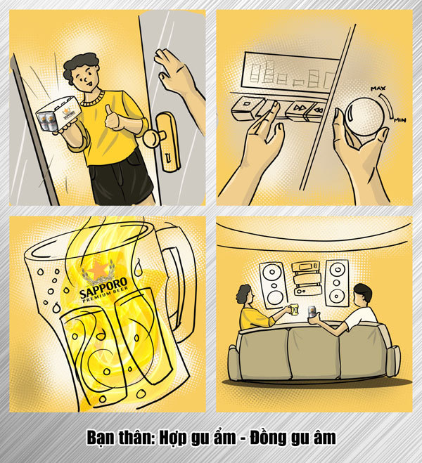 Giới trẻ ngày nay đã nhìn nhận việc uống bia là để giải trí thông qua những cuộc thảo luận hào hứng trên mạng xã hội, uống vừa đủ sẽ khiến cho mọi cảm xúc thêm thăng hoa. Hơn hết là tận hưởng niềm vui quanh mình dù là nhỏ nhất, tạo cho bản thân nguồn năng lượng tích cực để đối mặt với mọi áp lực trong cuộc sống. Sapporo Premium Beer với vị bia êm đằm đặc trưng đã, đang và sẽ tiếp tục đồng hành cùng mọi thực khách trong hành trình tạo ra và tận hưởng những niềm vui riêng biệt.