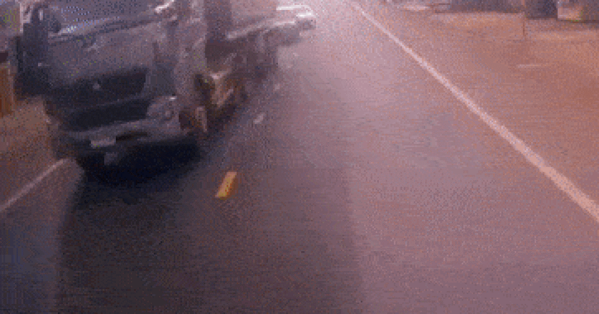 Vụ việc xảy ra vào ngày 24/12 trên đường MKDA (Moscow Automobile Ring Road) tại Nga, chiếc sedan màu đen cố gắng lách sang làn bên phải để tránh đường tắc đã bị một ôtô phóng nhanh quyệt phải và rơi cản trước.
