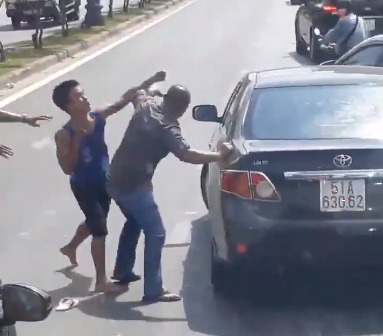 Xích mích trên phố, tài xế Mazda thẳng tay đấm tài xế Grabbike