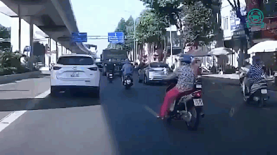 Sau khi khiến chiếc xe tay ga ngã nhào ra đường, tài xế chiếc BMW X5 vội vã phóng đi. Tuy nhiên, chiếc BMW X5 đã phải dừng lại vì bị các xe khác chặn đường.