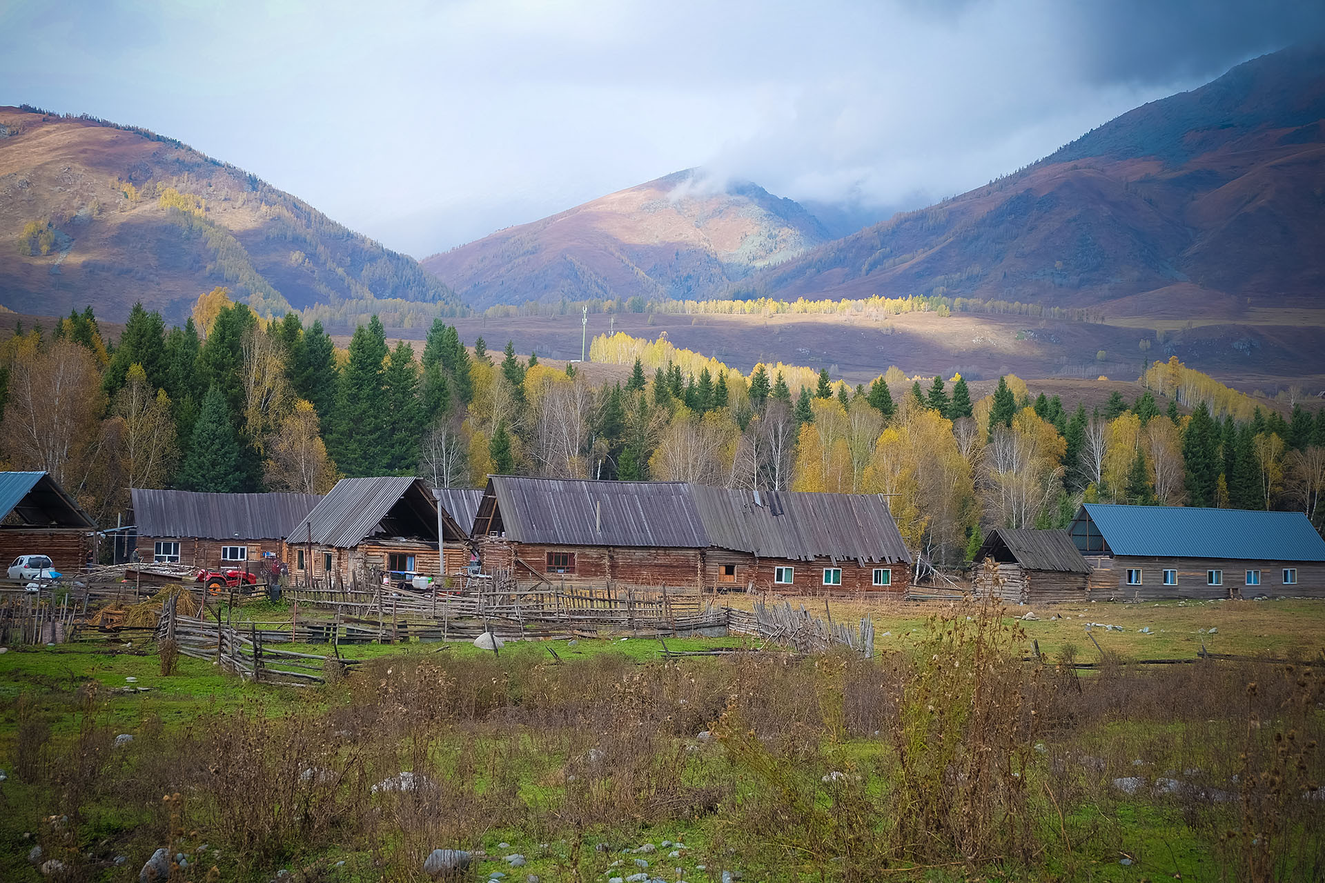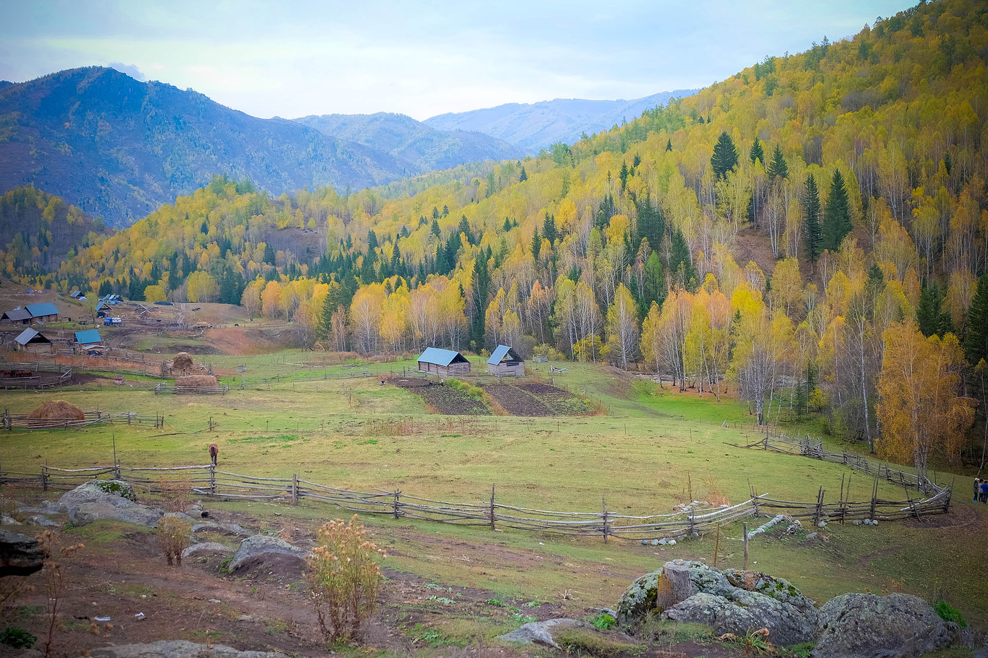 Làng Hòa Mộc (huyện Burqin, vùng Altay, Tân Cương) vào những ngày thu là một bức tranh thiên nhiên đẹp khó tả. Ngôi làng nhỏ nhắn nằm nép mình trong thung lũng, như tách biệt hoàn toàn khỏi thế giới náo nhiệt bên ngoài.
