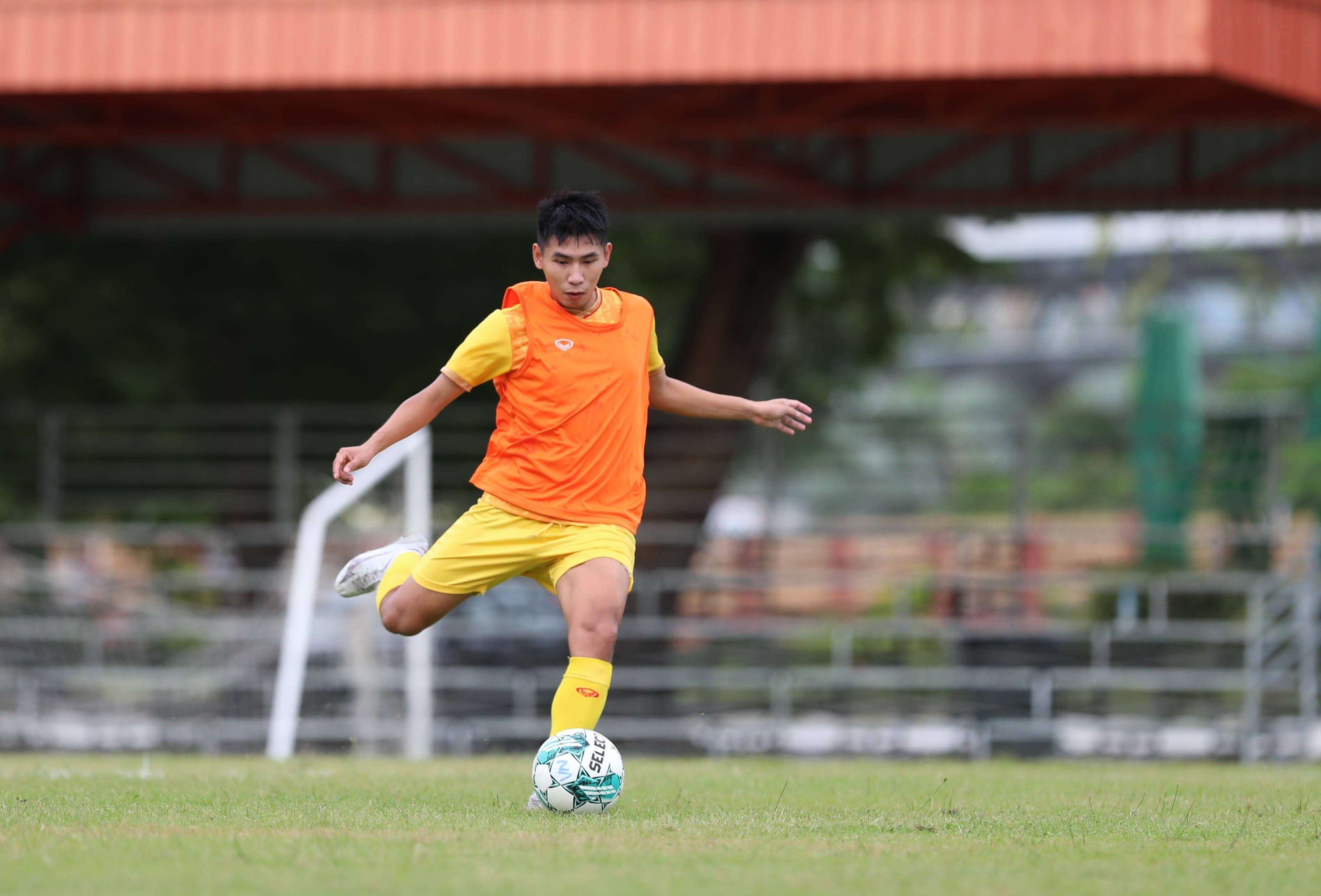 Văn Trường cùng đồng đội tỏ ra thoải mái, cười tươi trên sân tập và sẵn sàng đấu Malaysia ở bán kết giải U23 Đông Nam Á 2023.
