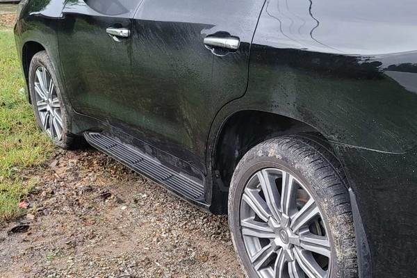 Vấp "ổ gà" giữa quốc lộ, xe sang Lexus 570 nổ lốp, suýt gặp nạn
