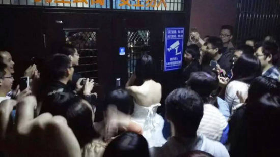 Một cô gái trẻ đã diện bộ váy trắng và đứng bên ngoài ký túc xá sinh viên tại Đại học Tây Bắc (Trung Quốc) để cầu hôn bạn trai.