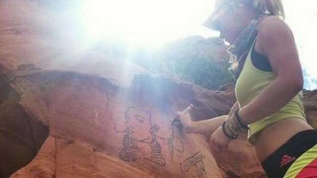 Cô gái trẻ tuổi người Mỹ đã có hành vi phá hoại tài sản quốc gia nghiêm trọng khi vẽ bậy lên 7 núi đá ở 7 công viên quốc gia.