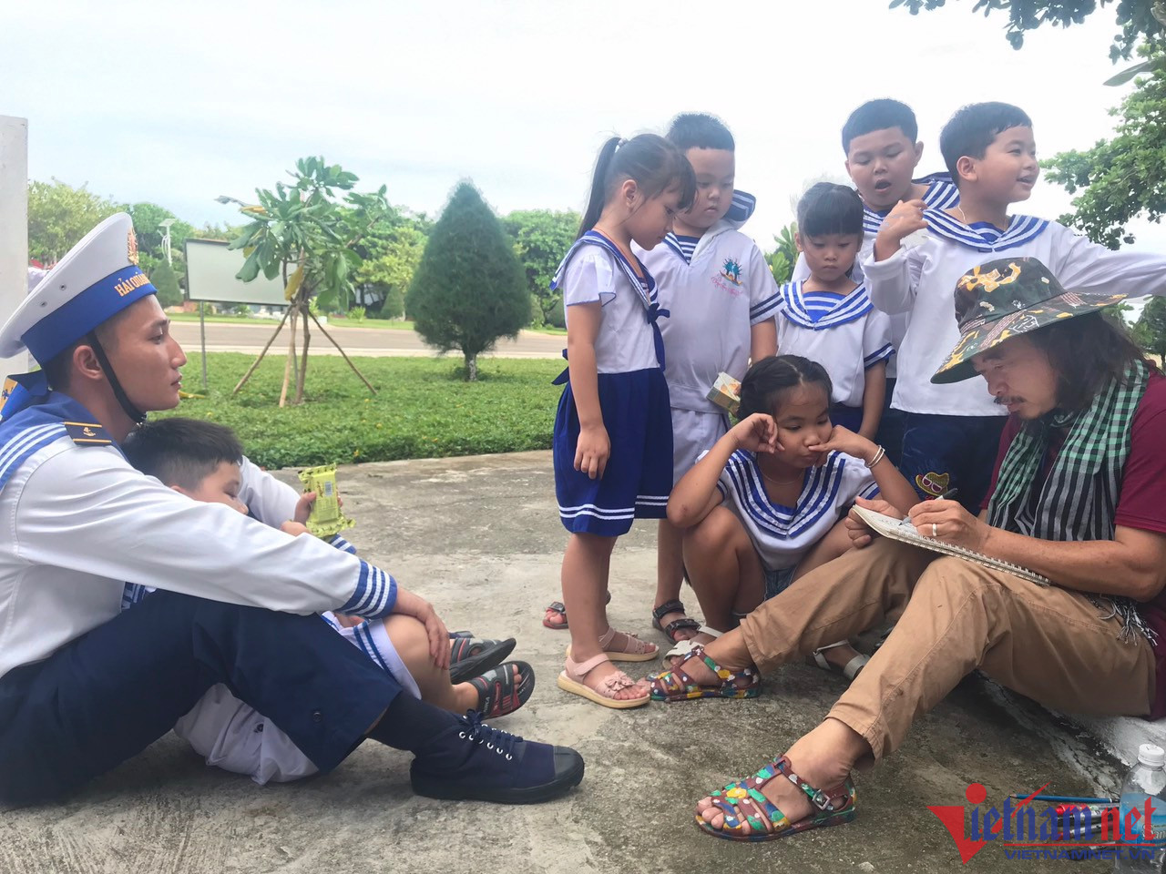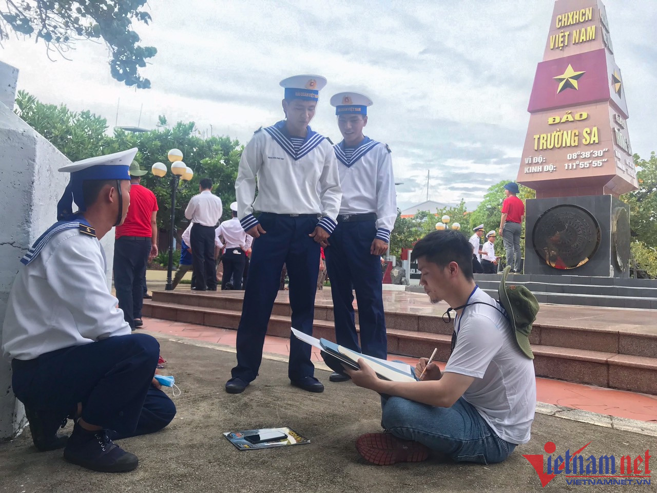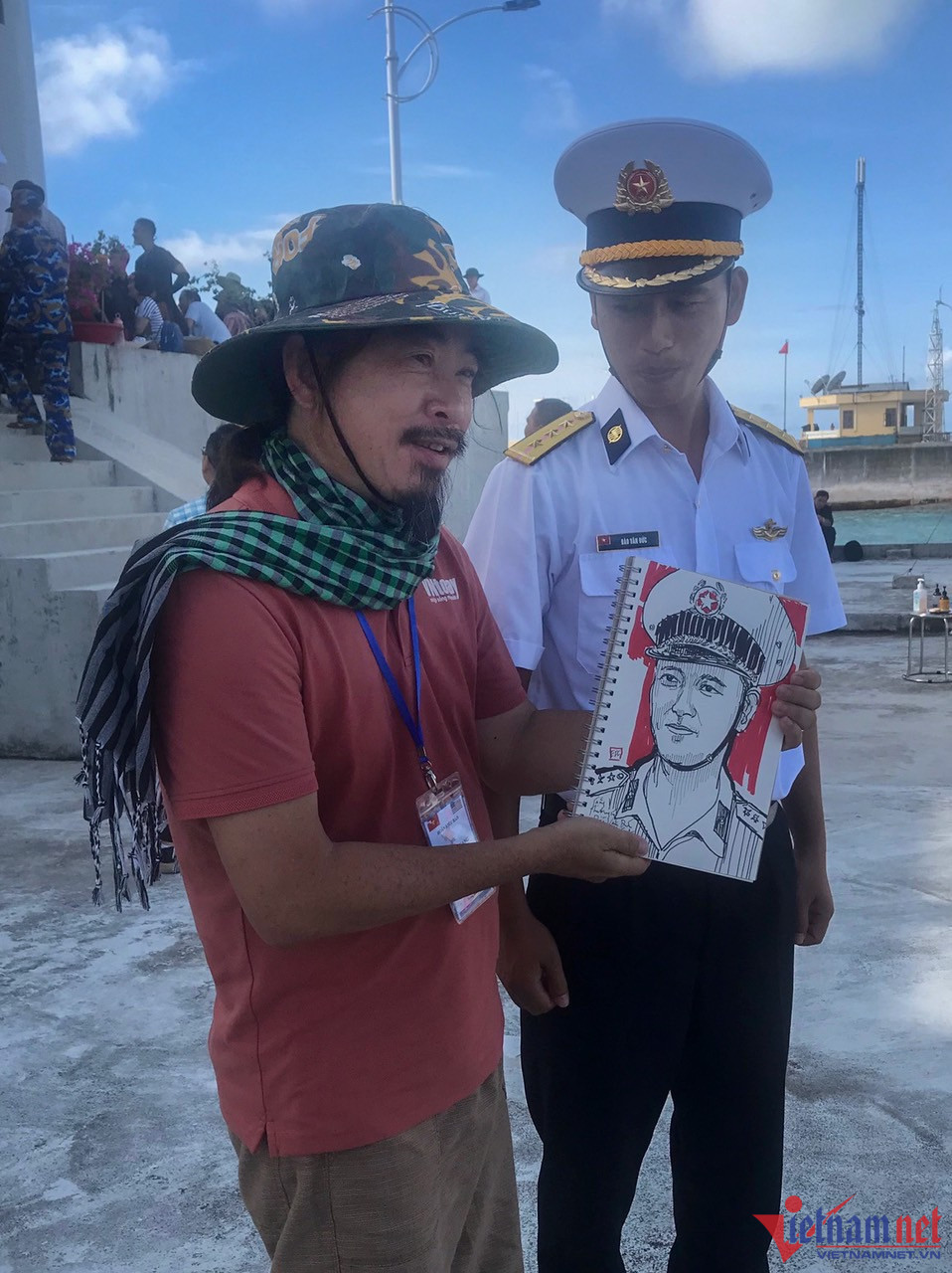 Trong đoàn công tác ra thăm Trường Sa lần này còn có họa sỹ Etcetera Nguyễn (kiều bào Mỹ). Ông đã vẽ nhiều cán bộ, chiến sĩ Trường Sa bằng bút nước, sau đó trân trọng ký tên, tặng lại.
