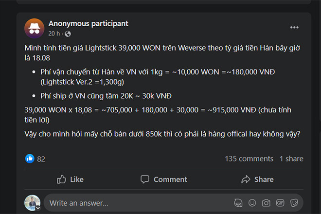 Không chỉ tìm cách mua và săn vé, fan của BlackPink còn ủng hộ nhóm bằng cách mua lighstick, thể hiện sự sát cánh cùng thần tượng và tạo ra không gian sôi động trong concert. Song các khán giả khá hoang mang khi giá cho một chiếc búa (lightstick của nhóm BlackPink) dao động từ 700 đến hơn 900 nghìn đồng và khó xác định nguồn gốc mặt hàng khi có quá nhiều người rao bán trong các hội nhóm.