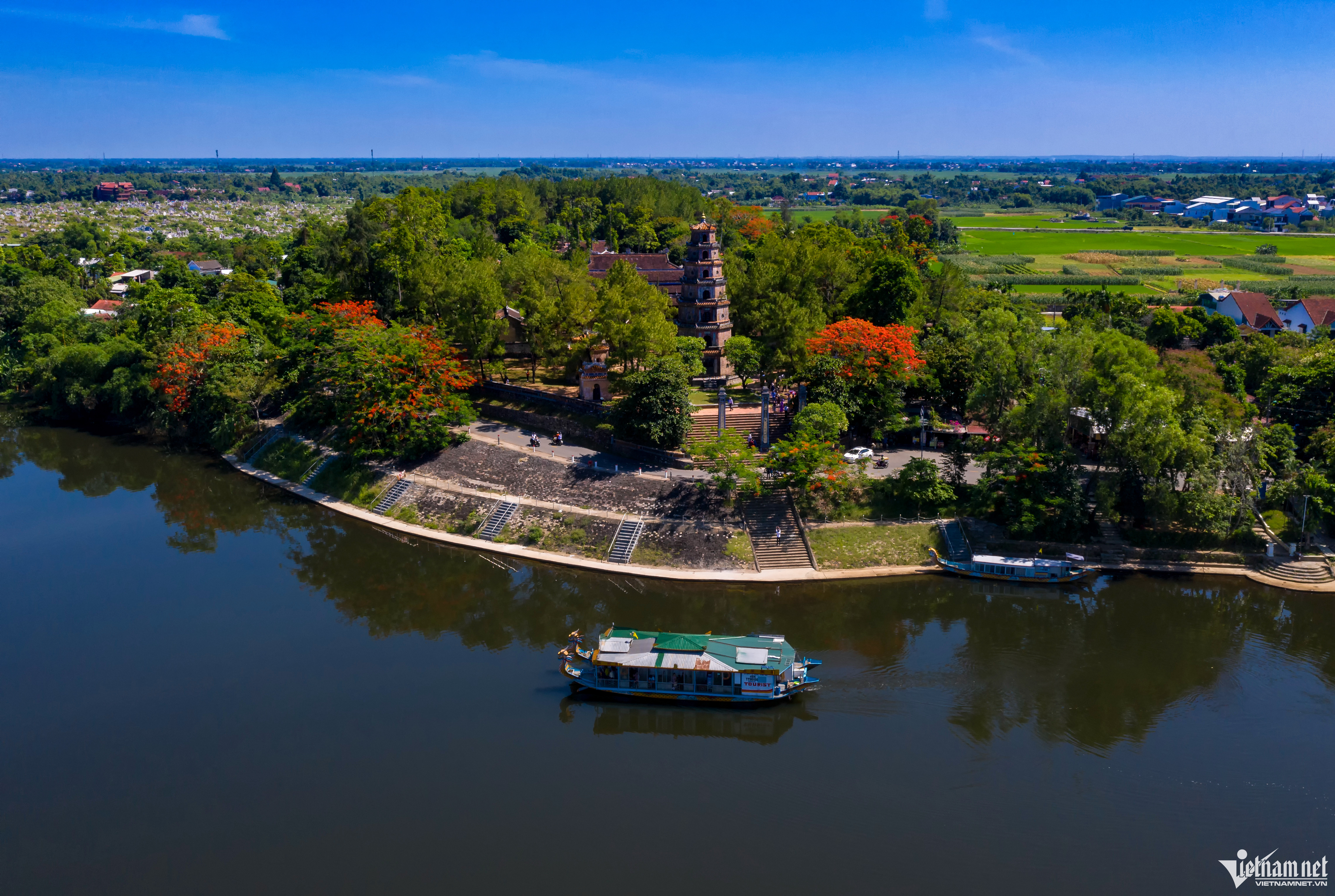 Chùa Thiên Mụ, còn được gọi là chùa Linh Mụ, được chúa Nguyễn Hoàng cho xây dựng vào năm 1601. Chùa nằm bên bờ Bắc sông Hương thuộc địa phận xã Hương Long, cách trung tâm thành phố Huế 5km. Theo dấu thời gian, chùa Thiên Mụ đã trải qua bao lần trùng tu. Trong đó, nổi bật nhất là cuộc trùng tu năm 1710, dưới triều đại của chúa Nguyễn Phúc Chu. Ông cho đúc Đại hồng chung nặng hơn 2 tấn, là chiếc chuông lớn thứ nhì ở Việt Nam (chỉ sau chuông Cổ Lễ ở tỉnh Hà Nam). Chuông được coi là bảo vật của chùa và đã đi vào ca dao như một nét đẹp của xứ Huế êm đềm và sâu lắng.