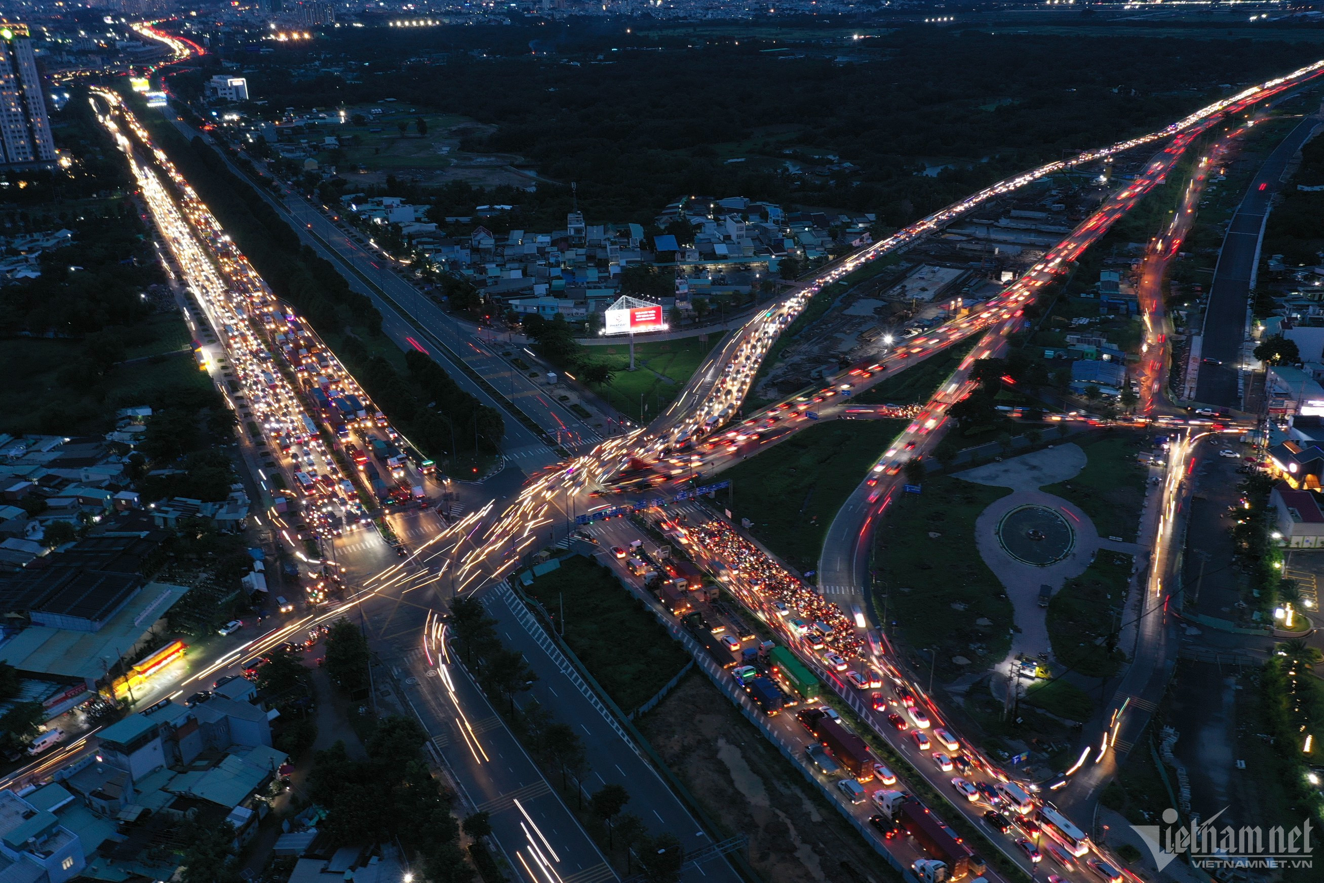 Các ngã đường về nút giao An Phú để vào cao tốc TP.HCM- Long Thành- Dầu Giâu đều nêm chặt phương tiện.