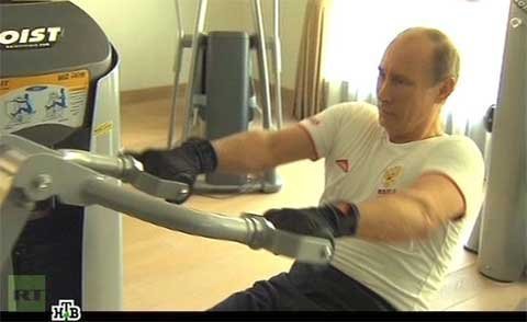 Mỗi sáng, Putin tới phòng tập với chú chó Labrador trung thành và bắt đầu tập luyện với các máy móc. Sau đó là thời gian để bơi 1.000 m. Sau thời gian rèn luyện thân thể với cường độ cao, người đứng đầu nước Nga đi tắm - một quá trình gồm việc bơi cả ở bể tắm nóng và bể tắm lạnh.