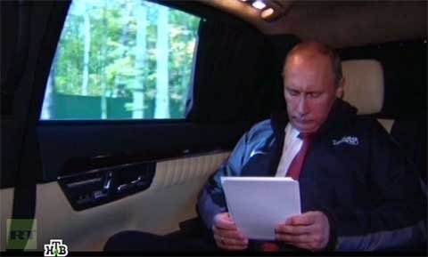 Dù Tổng thống Putin thường xuyên được các mạng tin tức quốc tế và khu vực đề cập song ông có rất ít thời gian để theo dõi. Putin cho hay, có đôi lúc ông xem tin tức khi đang tập thể dục song thường nhận được thông tin mật từ các "phong bì đỏ" do nhân viên trao cho.