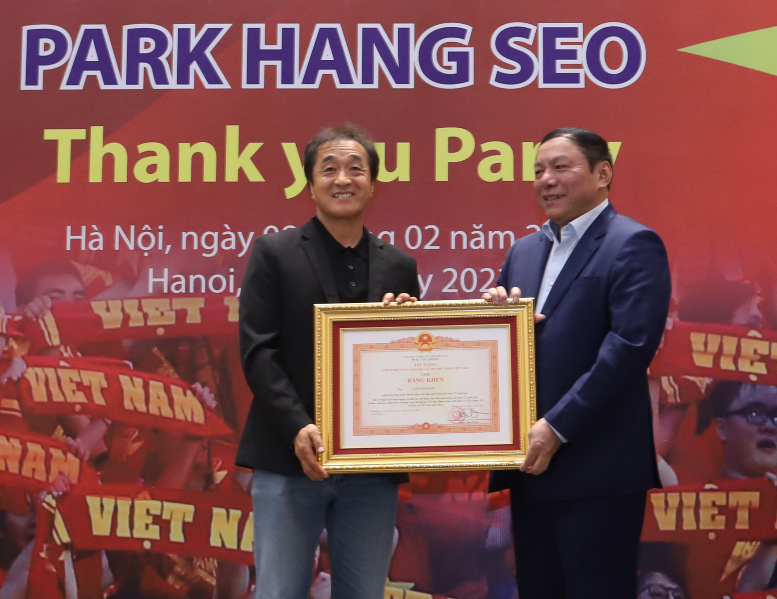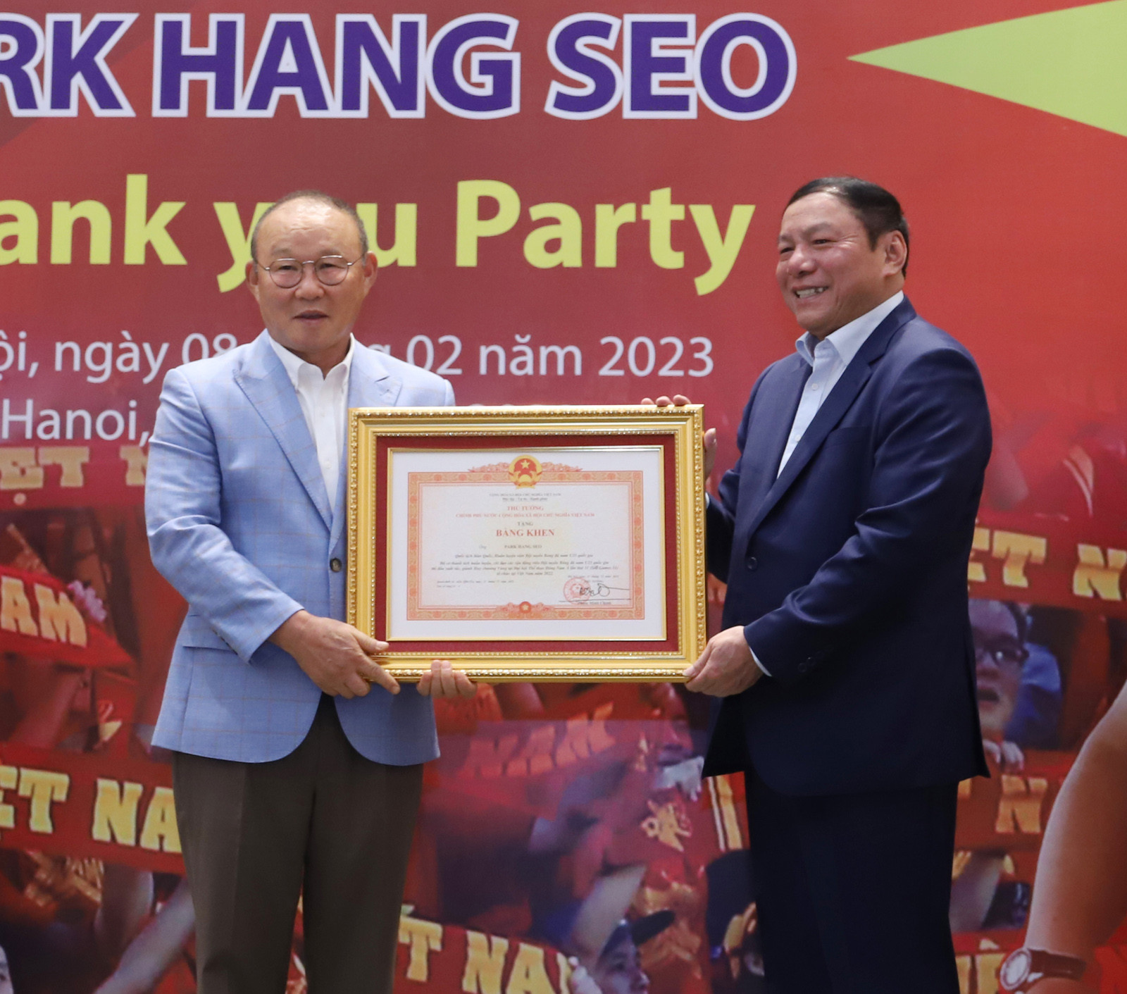 Phát biểu tại buổi lễ, Bộ trưởng Bộ VH, TT&DL Nguyễn Văn Hùng: “Trong 5 năm qua HLV Park Hang Seo dẫn dắt tuyển Việt Nam đi từ thắng lợi này đến thắng lợi khác. Chính ông là người truyền cảm hứng lãnh đạo đưa bóng đá Việt Nam đi vào lịch sử từ trước đến nay.