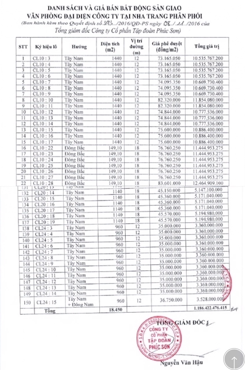 | Trong khi các dự án BT của Tập đoàn Phúc Sơn vẫn chưa hoàn thành thì phần đất đối ứng làm các dự án BT tại sân bay Nha Trang cũ đã được phân lô rao bán rầm rộ từ năm 2016 và hiện đã bán gần hết. |