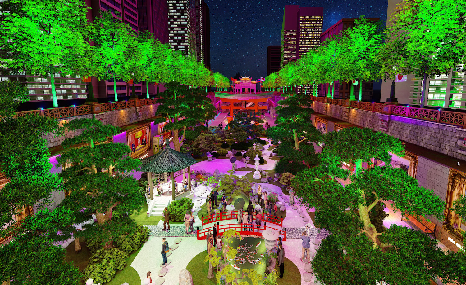 Phối cảnh 3D tổng thể của Không gian văn hóa vườn Nhật Bản tại Công viên Hữu nghị Việt-Nhật trên sông Tô Lịch