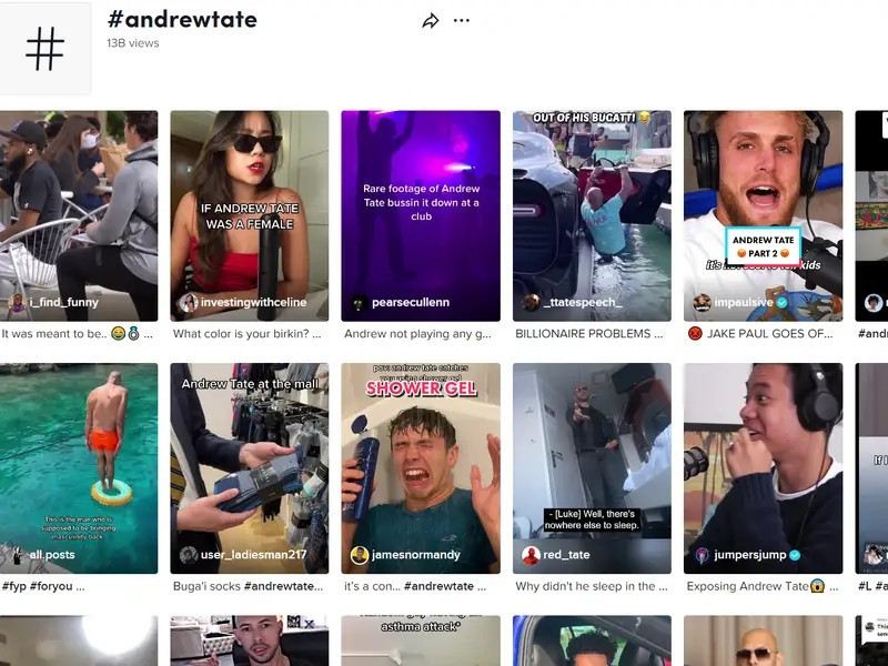 Nhưng thay vì bị tẩy chay lập tức, Tate vẫn thu hút hàng triệu người theo dõi trên các nền tảng mạng xã hội. Chỉ tính riêng trên TikTok, các video của anh ta được xem 11,6 tỷ lần trên TikTok. Còn hashtag liên quan #AndrewTate có 13 tỷ lượt xem tính đến giữa tháng 8.