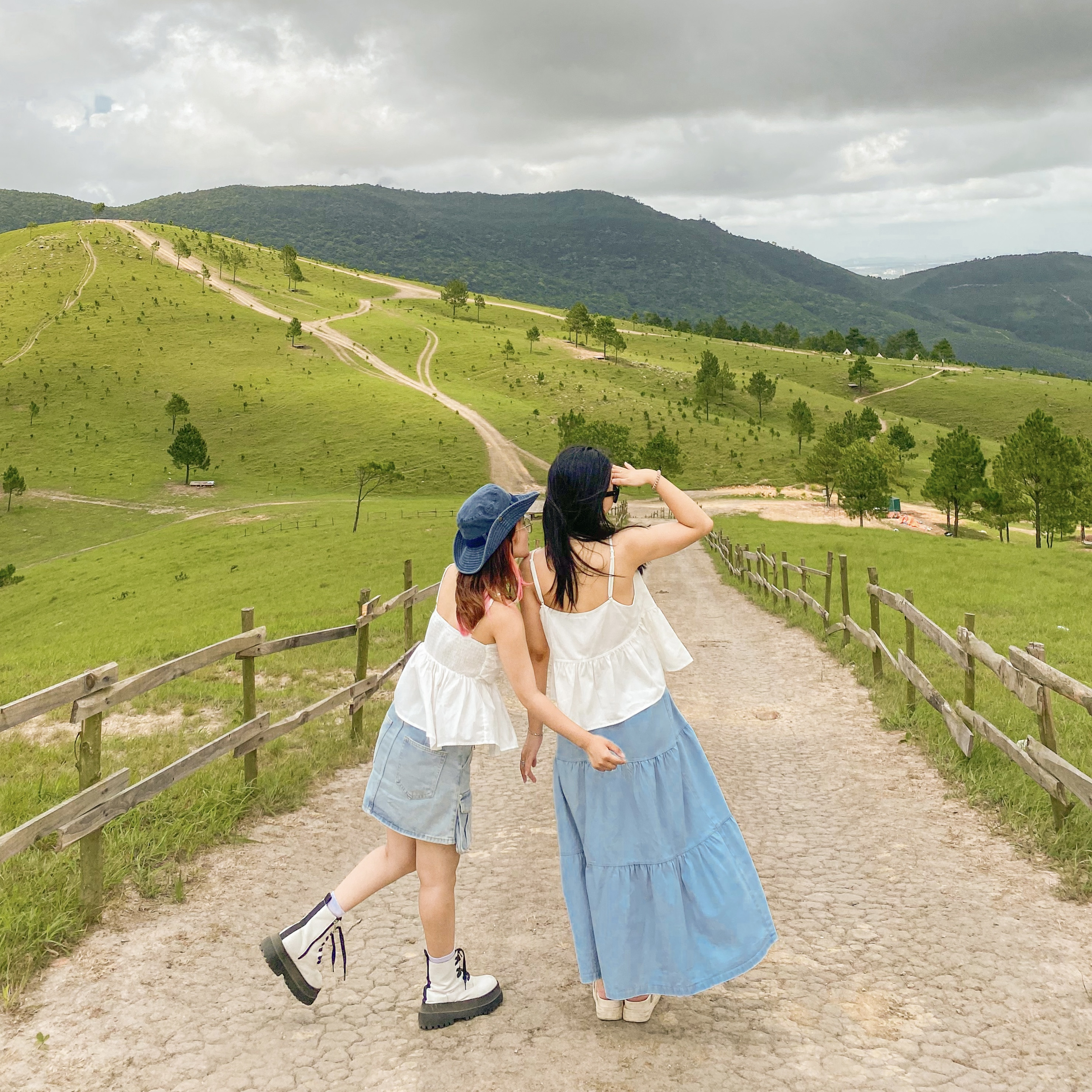 Huyền và bạn thân chụp ảnh tại đồi Phượng Hoàng trong chuyến đi mới đây (Ảnh: Huyềnn)