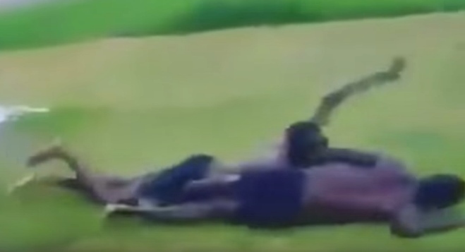 Cũng là cuộc thi ở đường đua xanh nhưng là trên thảm cỏ, 2 "vận động viên" có màn so tài hết sức gay cấn và nghẹt thở. Chứng kiến cuộc đọ sức của 2 người đàn ông này, khó có ai có thể nhịn được cười.