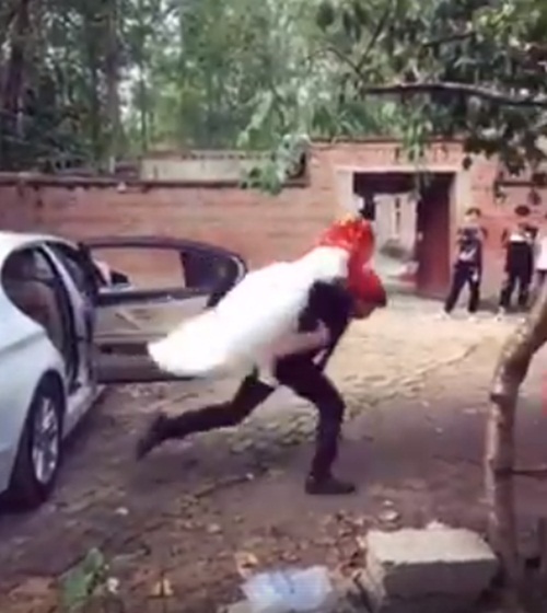 Cõng cô dâu vào nhà, chú rể không ngờ lại biến mình thành trò cười