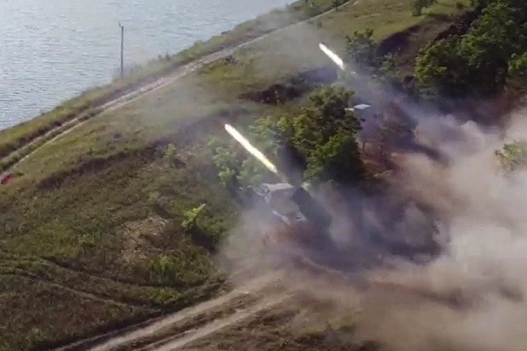 Nhóm phóng viên chiến trường thuộc kênh truyền hình Zvezda TV hôm 7/7 đã ghi lại cảnh quân đội Nga dùng hai hệ thống pháo phản lực phóng loạt BM-21 để tấn công một khu vực tập trung lính Ukraine. Theo nhóm phóng viên trên, loạt đạn của mỗi xe phóng có thể phá hủy các mục tiêu đối phương trong phạm vi 400 x 400m.