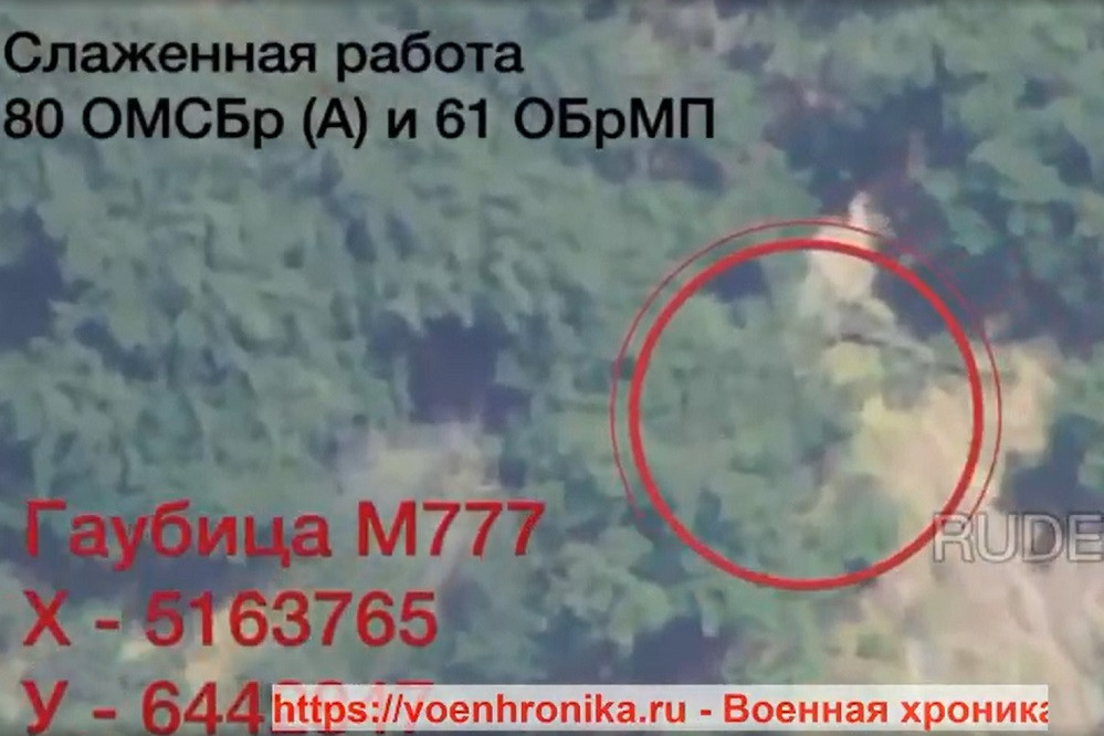 Theo đoạn video được trang Voenhronika.ru đăng ngày 18/6, UAV trinh sát Orlan-10 của Nga, hoạt động gần khu dân cư Sofiivka ở tỉnh Donetsk, đã phát hiện một nhóm binh sĩ Ukraine đang triển khai lựu pháo M777 trong khu vực có nhiều cây cối. Dù các binh sĩ Ukraine đã cố gắng ngụy trang cho khẩu pháo lẫn vào màu xanh của các tán cây cạnh đó, nhưng camera lắp đặt trên UAV vẫn có thể phát hiện phần thân và nòng pháo lộ ra ngoài.