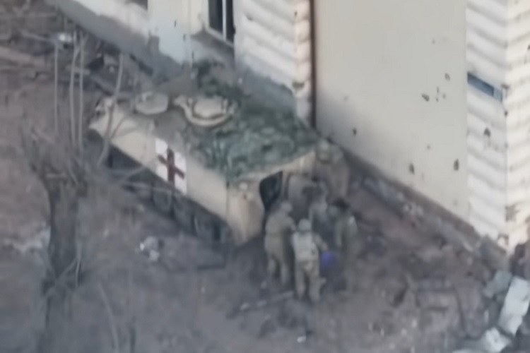 Khi tới tòa nhà được dùng làm nơi trú ẩn tạm thời cho các thương binh Ukraine, chiếc xe trên đã dừng lại. Một binh sĩ thuộc kíp lái M113 rời xe và kêu gọi những binh sĩ khỏe mạnh mau đưa thương binh ra xe. Sau khi thương binh được chuyển lên khoang sau xe, kíp lái liền điều khiển chiếc M113 nhanh chóng đi về hướng tây bắc, rời Soledar.