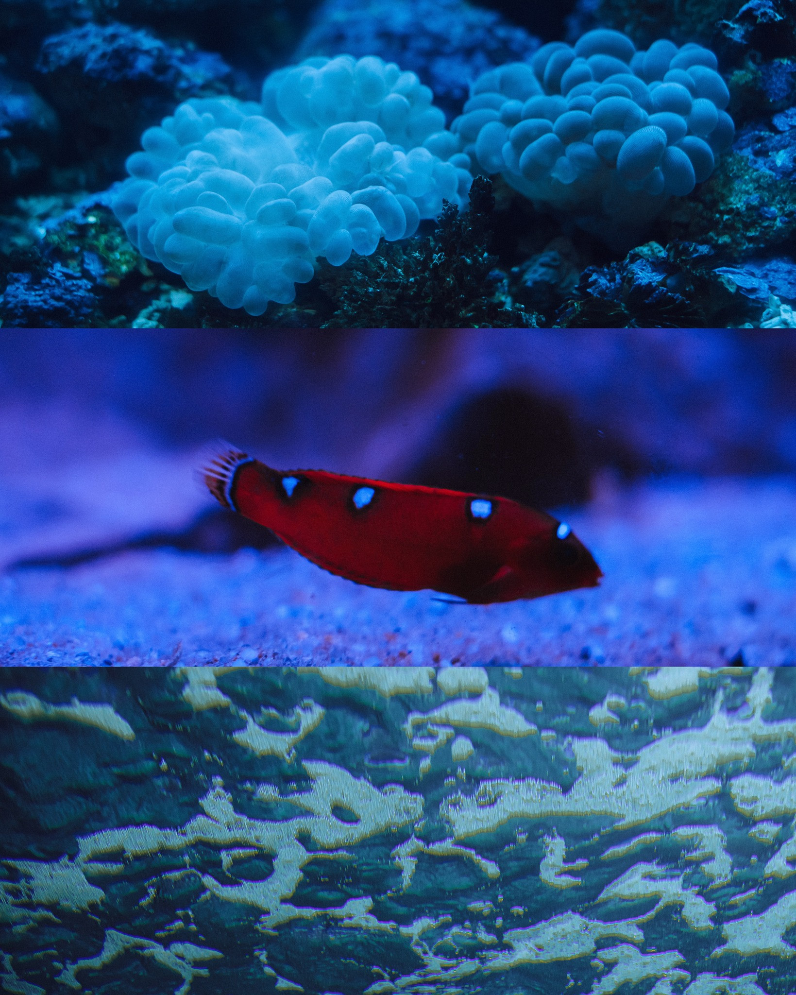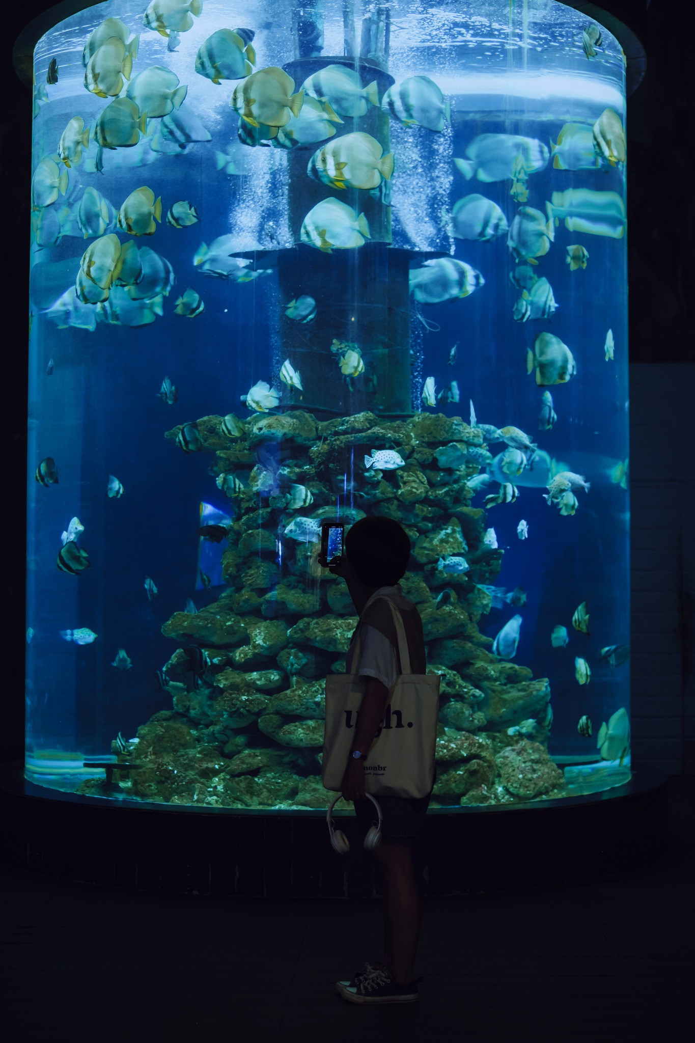 Ngay khi bước vào khu bể kính của bảo tàng, du khách sẽ cảm thấy choáng ngợp trước không gian tràn ngập màu sắc và lạ mắt của vô vàn các loại cá, san hô.... tạo nên một thế giới sinh vật biển phong phú và sống động. Du khách có thể quan sát những hoạt động, thói quen, tập tính và tìm hiểu thông tin về từng loài một cách chi tiết.