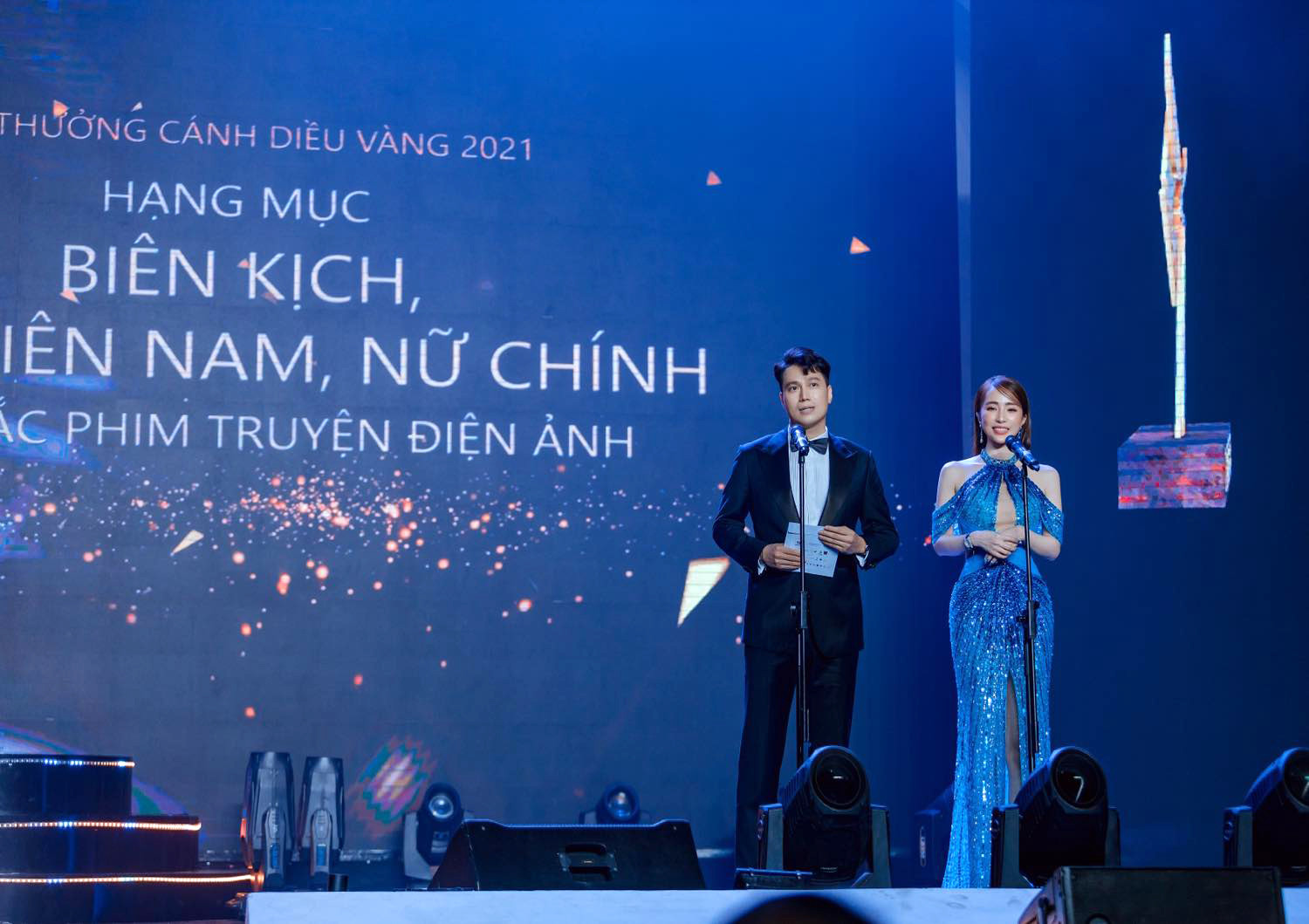 Việt Anh và Quỳnh Nga không có phim được đề cử nhưng được chọn là nghệ sĩ công bố giải Nam và Nữ chính xuất sắc nhất thể loại phim truyện điện ảnh. Trên sân khấu lễ trao giải Cánh diều được tường thuật trực tiếp, Việt Anh luôn hướng ánh mắt về bạn diễn Quỳnh Nga trong phim 'Sinh tử' và gần nhất là 'Chồng cũ, vợ cũ, người yêu cũ'. Việt Anh, Quỳnh Nga cùng Doãn Quốc Đam, Bảo Hân, Khả Ngân, Thanh Sơn dưới hàng ghế khán giả.Thanh Sơn chia sẻ hình ảnh sau khi nhận giải Nam diễn viên xuất sắc nhất thể loại phim truyền hình nhờ vai Đăng trong '11 tháng 5 ngày': "Khi bắt đầu làm phim truyền hình tôi luôn nghĩ đến một ngày mình nhận giải thưởng và tưởng tượng ra khung cảnh ngày hôm nay được tham gia nhưng chưa bao giờ tưởng tượng ra được cảm xúc hôm nay, thật sự nó hơn cả tuyệt vời". Khả Ngân trong lần đầu ra Hà Nội đóng '11 tháng 5 ngày' cũng giành luôn giải Nữ chính xuất sắc nhất thể loại phim truyền hình với vai Tuệ Nhi. Cô chia sẻ sau khi nhận giải: "Thời gian đầu thực sự rất khó khăn vì không hiểu được nhau, nhất là lời thoại, người Nam - người Bắc. Tôi cũng đã cố gắng thay đổi rất nhiều và cũng rất may các anh chị luôn nhẫn nại, yêu thương, luôn chờ tôi để có được ngày hôm nay". Huyền Lizzie trượt giải cá nhân nhưng cùng nhận giải Cánh diều bạc Phim truyện truyền hình cùng đoàn phim 'Thương ngày nắng về'. Nữ diễn viên tình tứ xuất hiện cùng bạn diễn Đình Tú trên thảm đỏ sự kiện tối 13/9 ở Nha Trang. Đạo diễn Bùi Tiến Huy nhận cú đúp giải thưởng cho Đạo diễn cùng Cánh diều bạc phim truyền hình xuất sắc. Anh chia sẻ niềm vui với dàn diễn viên trong 'Thương ngày nắng về' sau lễ trao giải. Ê kíp 2 đoàn phim 'Thương ngày nắng về' và '11 tháng 5 ngày' trên thảm đỏ sự kiện sau chiến thắng lớn. Doãn Quốc Đam và Bảo Hân chụp hình cùng Phó Thủ tướng Vũ Đức Đam sau sự kiện. Ở tuổi 22, Bảo Hân chạm đến giải Cánh diều 2 lần cho Nữ diễn viên phụ xuất sắc nhất thể loại phim truyện điện ảnh ở Cánh diều 2021 (phim Bình minh đỏ) và Diễn viên triển vọng tại Cánh diều 2019 (Về nhà đi con). "22 tuổi… hơn cả 2 từ 'Hạnh Phúc”, Bảo Hân chia sẻ sau khi nhận giải. MC Quyền Linh trong vòng vây khán giả ở giải Cánh diều 2021. Ảnh: Lữ Đắc Long.
