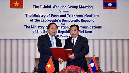 Chiều 1/11 tại Viêng Chăn, Bộ trưởng Thông tin và Truyền thông Việt Nam và Bộ trưởng Bưu chính Viễn thông Lào đã ký thoả thuận hợp tác giữa hai bộ.