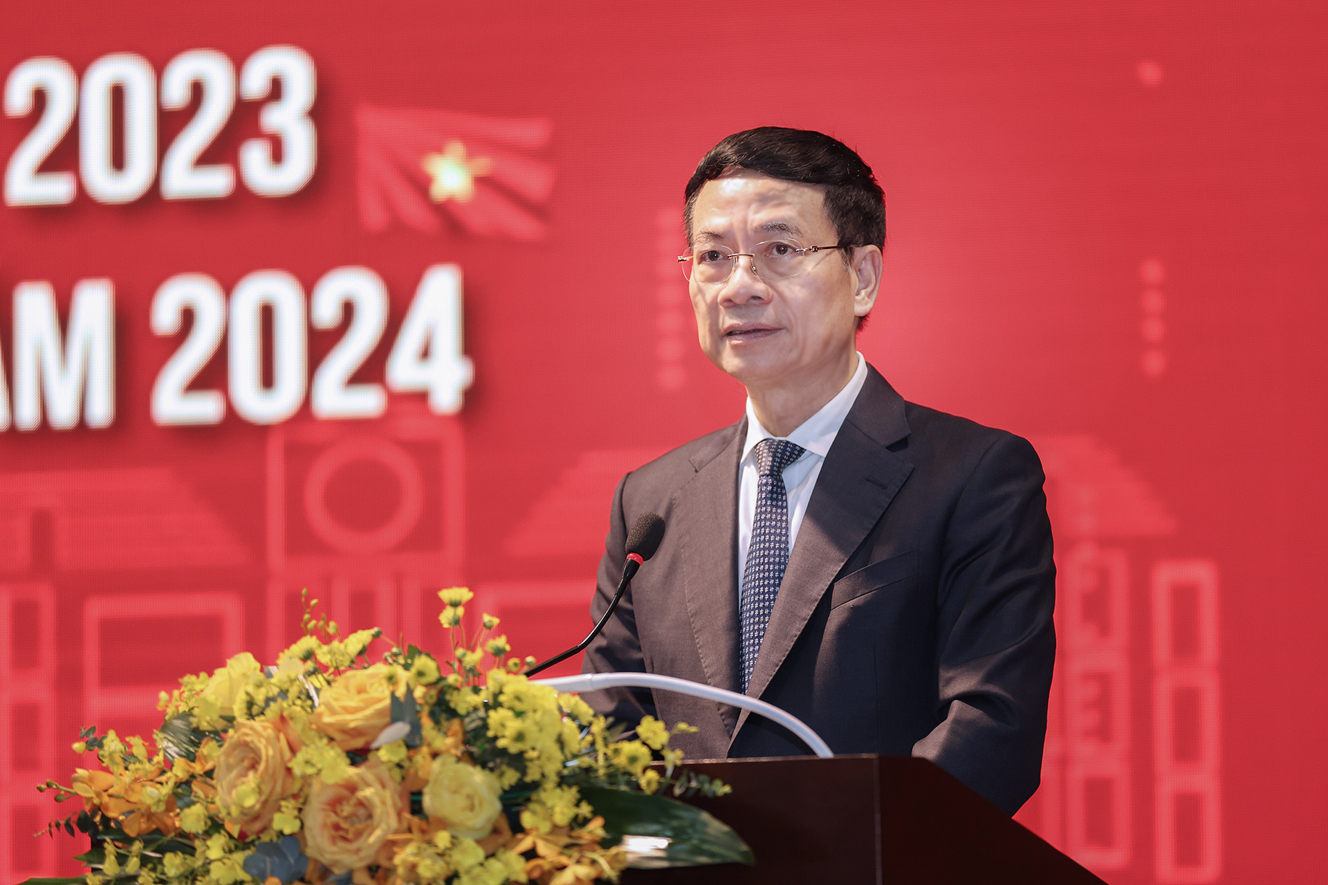 “Với truyền thống “Trung thành - Dũng cảm - Tận tụy - Sáng tạo - Nghĩa tình”, phương châm “Làm gương - Kỷ cương - Trọng tâm - Bứt phá” cùng tinh thần “Nghĩ ngược lại và làm khác đi” của thời chuyển đổi số, toàn ngành TT&TT hứa sẽ hoàn thành các nhiệm vụ năm 2024 - năm tăng tốc bứt phá để hoàn thành kế hoạch 5 năm 2021 – 2025”, người đứng đầu ngành TT&TT cam kết.