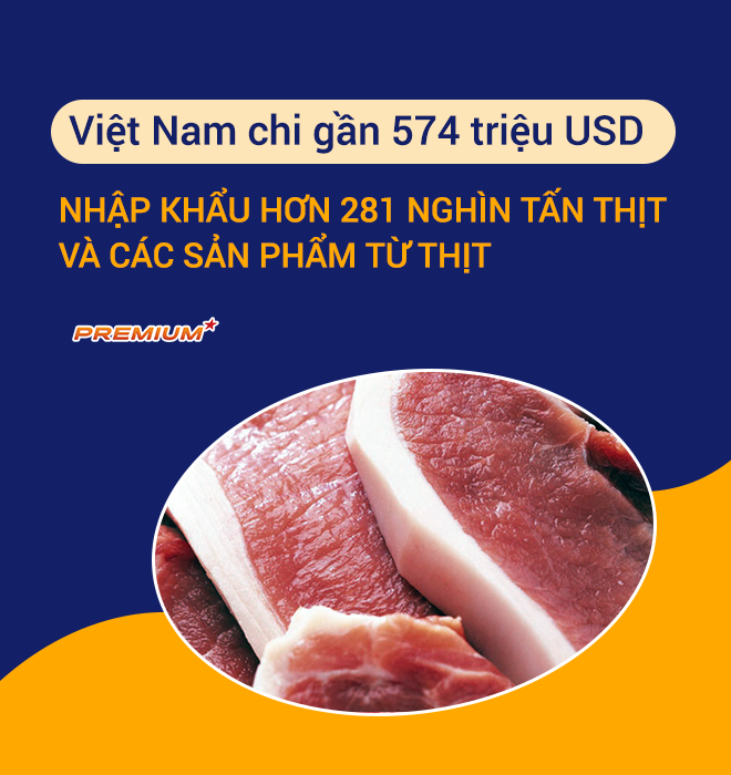 Trong 4 tháng đầu năm, Việt Nam đã nhập khẩu 281,6 nghìn tấn thịt và các sản phẩm từ thịt, với tổng trị giá 573,61 triệu USD, tăng 12,4% về lượng và tăng 16,7% về trị giá so với cùng kỳ năm trước.