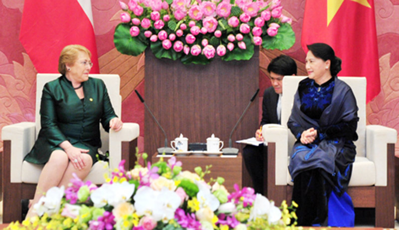 Tổng thống Michelle Bachelet nhấn mạnh, Chile ủng hộ hết mình để Việt Nam tổ chức thành công Tuần lễ cấp cao APEC 2017.Tổng thống Michelle Bachelet và Chủ tịch QH Nguyễn Thị Kim Ngân hài lòng về mối quan hệ Đối tác toàn diện giữa hai nước thời gian qua tiếp tục phát triển tích cực trên tất cả các lĩnh vực.