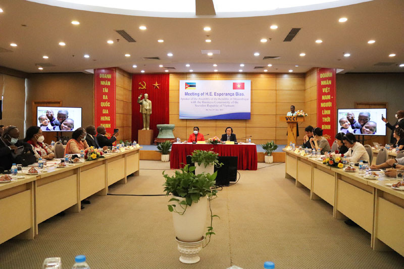 Trong khuôn khổ chuyến thăm chính thức Việt Nam, chiều 21/6, tại trụ sở Liên đoàn Thương mại và Công nghiệp Việt Nam (VCCI), Chủ tịch Quốc hội Esperanca Laurinda Francisco Nhiuane Bias và Đoàn đại biểu Quốc hội Mozambique đã có cuộc gặp gỡ cộng đồng DN Việt Nam.