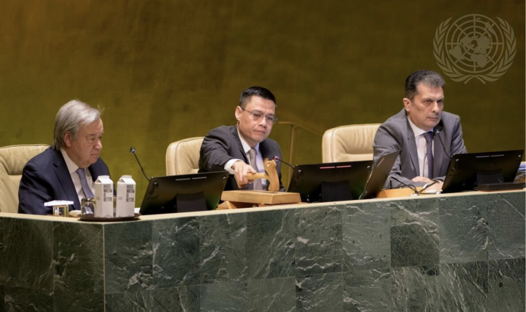 Trên cương vị Phó Chủ tịch Đại hội đồng Liên Hợp Quốc Khoá 77, Việt Nam đã đảm nhận thành công vai trò này, thể hiện qua việc tham gia sâu rộng vào quá trình thảo luận thúc đẩy Đại hội đồng thông qua một chương trình nghị sự bao trùm mọi khía cạnh của đời sống quốc tế, tham gia đầy đủ vào quá trình đề xuất, hoạch định những quyết định quan trọng của thế giới.