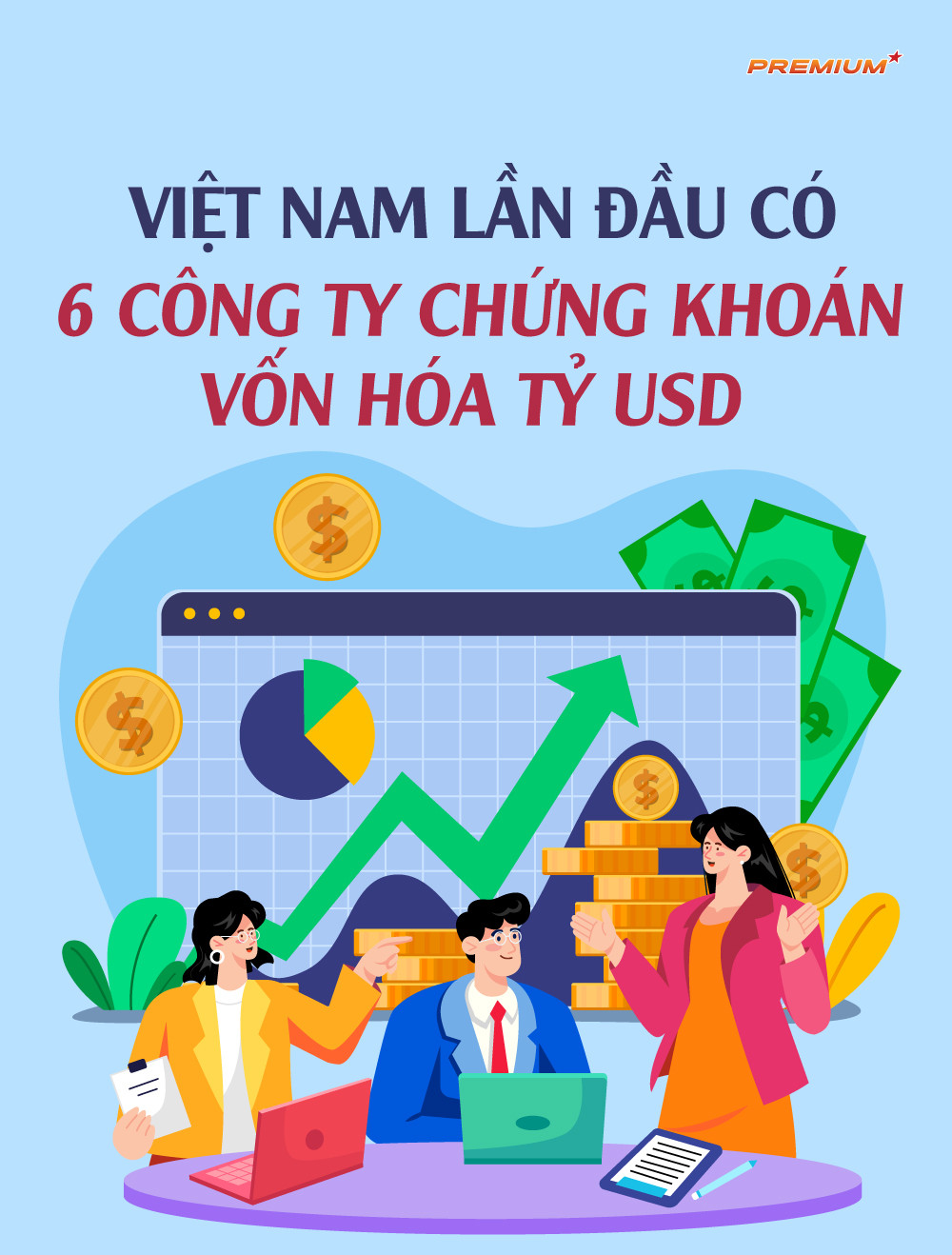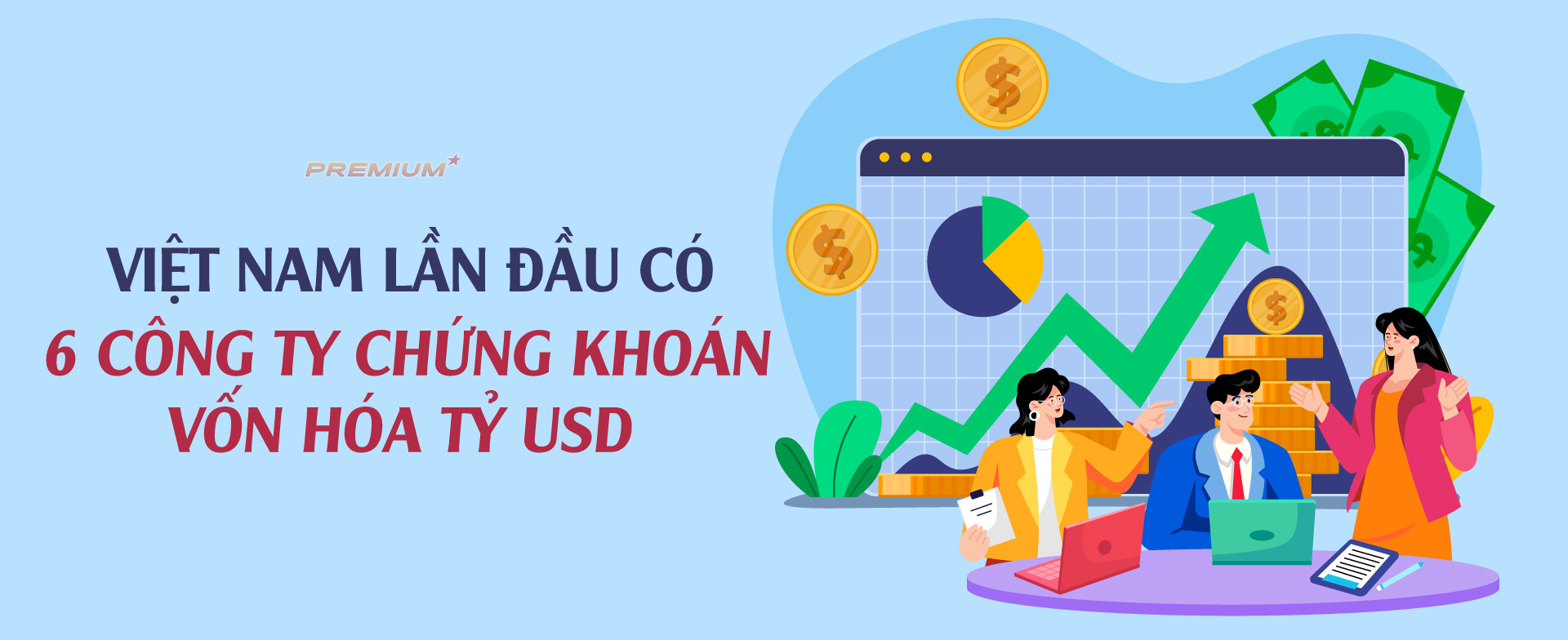 Tính đến hết ngày 15/8, Việt Nam đã có 6 công ty chứng khoán với giá trị vốn hóa từ 1 tỷ USD trở lên.