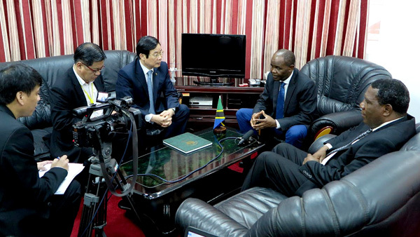Nhà báo Tấn Đức phỏng vấn Bộ trưởng Bộ Truyền thông, Khoa học và Công nghệ Tanzania Makame Mnyaa Mbarawa - ảnh: Kinh Quốc/INFOVIETNAM |