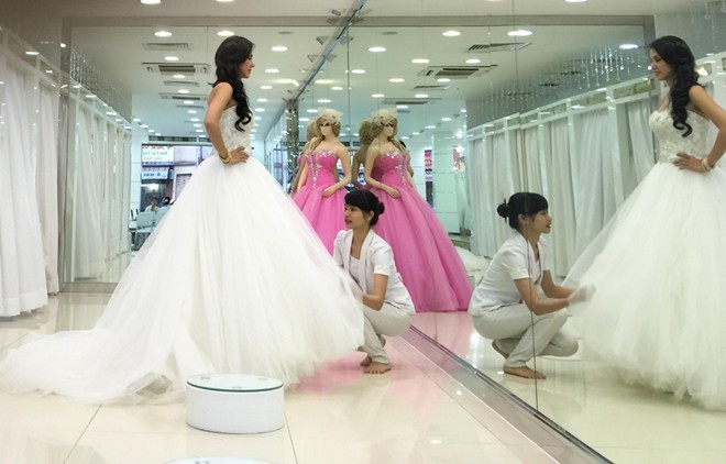Việt Trinh gây xôn xao vì thử váy cưới đóng phim