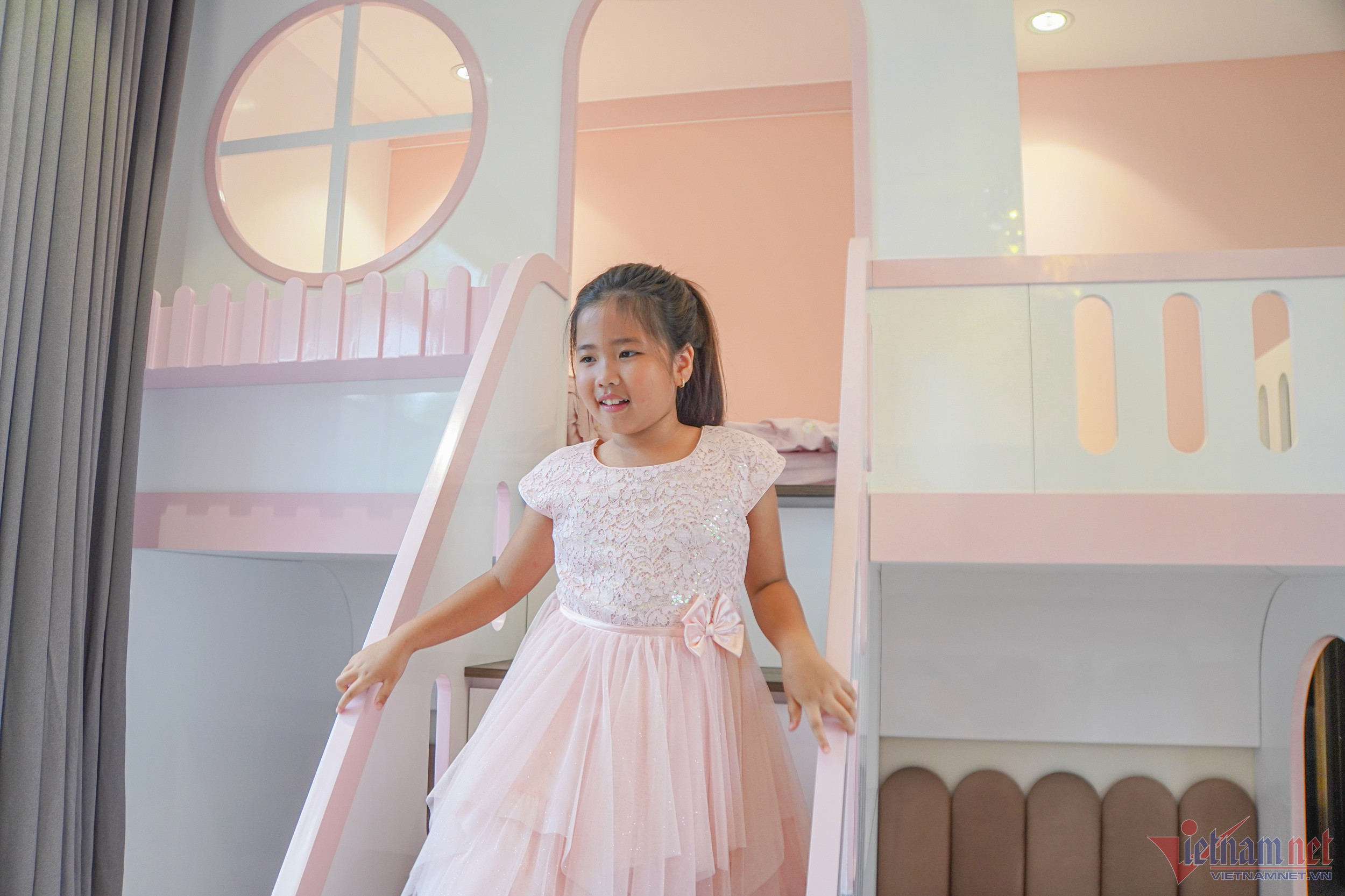 Nhà mới của ca sĩ Quách Thành Danh tọa lạc ở xã Phạm Văn Hai, huyện Bình Chánh, TP.HCM cách trung tâm thành phố khoảng 27km. Anh vừa hoàn thiện và đưa vợ con về đây vài tuần.Villa rộng 1.200m2 bao gồm khu nhà chính, sân trước và vườn sau. Quách Thành Danh mua đất nhiều năm trước, quyết định xây nhà làm nơi tổ chức đám cưới với bà xã Bảo Ngọc sau 11 năm bên nhau. Nhà có hồ bơi, hồ cá, vườn cây ăn quả và khu vực nuôi thú cảnh, gia cầm để các con Quách Thành Danh có không gian vui chơi. 5 con của nam ca sĩ rất mê bơi, mỗi ngày xuống bể bơi 3 lần.Bất động sản có giá trị ước tính 35 tỷ đồng, trong đó riêng mảnh đất khoảng 20 tỷ đồng.Sân trước từng được Quách Thành Danh tổ chức tiệc tân gia quy mô hàng trăm người, tận dụng hiên nhà rộng làm sân khấu. Bộ bàn ghế mái vòm là chỗ nghỉ ngơi, thư giãn của gia đình Quách Thành Danh khi ra chơi sân trước. Anh nói xây nhà không chỉ đơn thuần chi tiền mà sát sao gần như toàn bộ công đoạn. Vì vậy, ngôi nhà khiến anh tiêu tốn nhiều tâm trí và sức khỏe. "Trừ một số phần giao cho nhà thầu, còn lại tôi trực tiếp chỉ đạo tất cả việc lớn nhỏ cho 50-60 thợ. Tự tay tôi vẽ ngôi nhà mơ ước, chọn từng gốc cây, ngọn cỏ, viên gạch", Quách Thành Danh cho hay.Suốt giai đoạn đó, Quách Thành Danh đến công trình từ 7h sáng, về nhà lúc 19-20h mỗi ngày. Những ngày phải đi diễn, đặc biệt là ở Mỹ, anh ngủ càng ít.Nhà Quách Thành Danh gồm 6 phòng ngủ, 1 bếp, 1 phòng thờ và 1 sảnh lớn. Phòng khách kết hợp bếp vừa là nơi vợ chồng anh đón tiếp bạn bè, đối tác vừa là không gian sinh hoạt chung của gia đình.Chiếc TV 85 inch là một trong những món đồ được Quách Thành Danh đặt mua từ Mỹ. Anh tìm mua trên internet, ướm thử chúng vào từng vị trí và 'chốt đơn' ngay nếu ưng ý mà không nhìn giá tiền. Sau buổi 'chốt đơn', hơn 70 kiện hàng được vận chuyển từ Mỹ về Việt Nam góp phần khiến chi phí cho căn nhà đội lên nhiều so với dự tính ban đầu.Có lúc, chi phí đội lên quá cao khiến Quách Thành Danh không xoay xở kịp dòng tiền mặt. Hiện có 14 người đang sống trong ngôi nhà của Quách Thành Danh gồm gia đình anh, 6 người giúp việc và 1 y tá người Mỹ. Sáu người giúp việc này gắn bó với gia đình ca sĩ nhiều năm, được đối đãi như người nhà. Họ hiểu tính cách từng thành viên và được trang bị kiến thức y tế phổ thông, sẵn sàng xử lý nếu bé Tuấn Nhiên - con trai bị bệnh của Quách Thành Danh - gặp tình huống khẩn cấp. Phòng ngủ của vợ chồng Quách Thành Danh mang tông màu trầm gồm xám, nâu và kem nâu. Phòng có đầy đủ trang thiết bị hiện đại như máy chiếu, tủ lạnh, lò vi sóng...Tủ quần áo âm tường đủ để chứa 'kho' trang phục biểu diễn của Quách Thành Danh và hàng hiệu của Bảo Ngọc.Quách Thành Danh thích nhất phòng tắm rộng rãi có công năng mát-xa, xông hơi. Mỗi lần vợ chồng Quách Thành Danh xông hơi, ngâm bồn tắm và uống rượu thư giãn khoảng 1 tiếng.Phòng ngủ của 3 bé Mộc Nhiên, An Nhiên và Phúc Nhiên với tông màu trắng, hồng chủ đạo.Bé An Nhiên đặc biệt thích phòng ngủ và những gì cha dành cho mình.Bé Mộc Nhiên - 11 tuổi, con cả của vợ chồng Quách Thành Danh - nói thấy mình như công chúa khi vào phòng.Phòng ngủ của con trai nam ca sĩ - bé Hạo Nhiên theo phong cách đơn giản với tông màu trầm hơn. Mỗi căn phòng được lắp đặt hệ thống khóa cửa điện tử vân tay hiện đại.Trường hợp có khách đến nhà, phòng của bé Hạo Nhiên được trưng dụng làm chỗ ngủ cho họ.Ngoài các không gian chức năng và phòng thờ, Quách Thành Danh dùng không gian trống làm khu giải trí cho các con thay vì xây thêm phòng.
