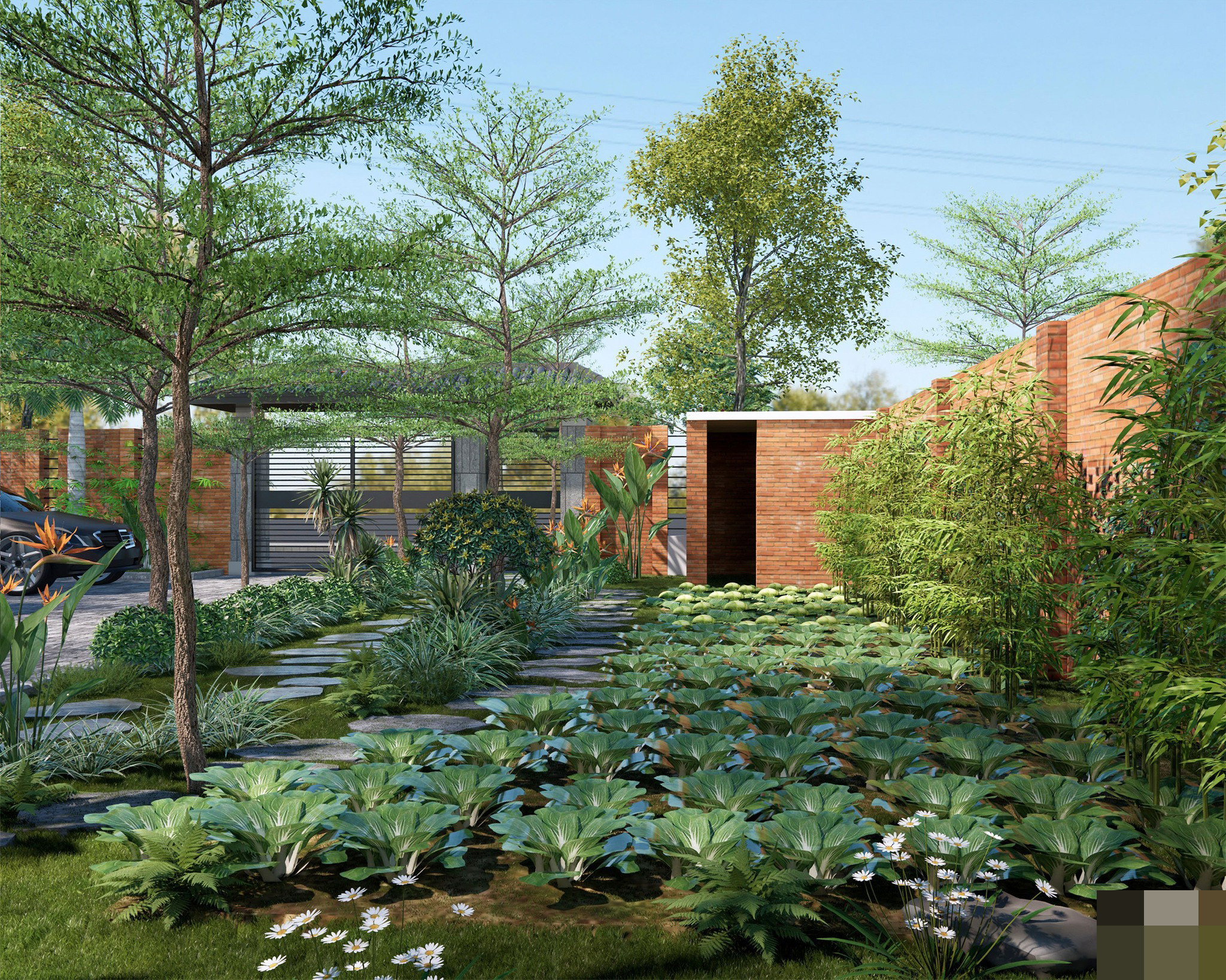 Hệ cổng chính làm tường rào cao để đảm bảo có sự riêng tư nhiều nhất, phần trước villa cũng là vườn rau nhỏ và gara. Khu vực giải trí sẽ tập trung vào mặt sau villa với view mặt hồ. Mặt sau với cổng thần đạo theo phong cách Nhật và bến thuyền là khung cảnh thơ mộng, bình yên cho cả nhà vào mỗi buổi chiều.
