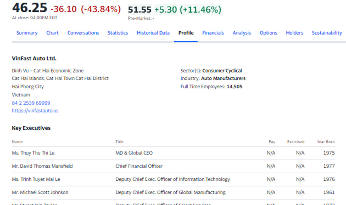 Trước giờ mở cửa phiên giao dịch này, cổ phiếu VinFast (VFS) của tỷ phú Phạm Nhật Vượng đã tăng khá mạnh, có lúc tăng 15-17%, từ mức giá đóng cửa hôm qua 46,25 USD/cp lên quanh ngưỡng 53 USD.