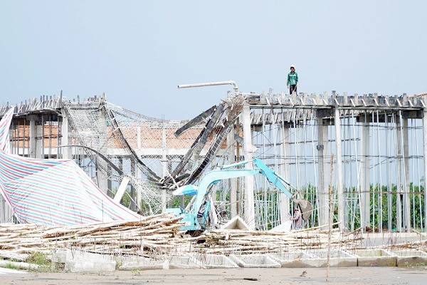 Sập giàn giáo công trình ở Vĩnh Long, 1 người bị thương