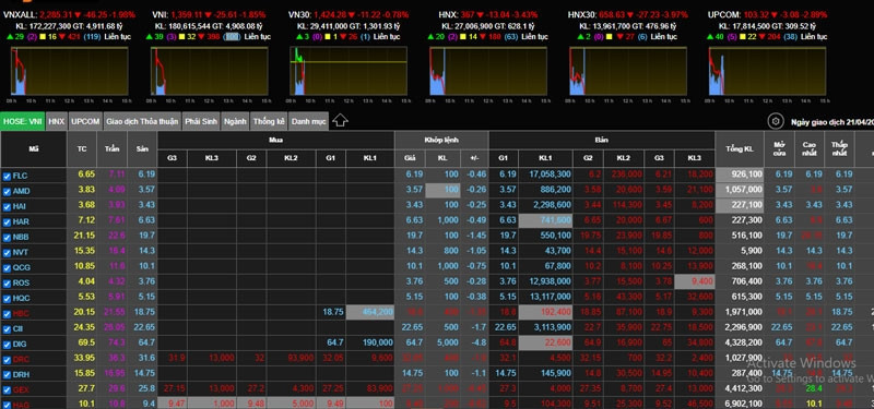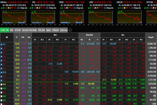 Số lượng cổ phiếu giảm trên sàn HOSE tăng lên khá nhanh và chỉ số VN-Index cũng như thanh khoản biến động liên tục. Tuy nhiên, bảng giá từng mã cổ phiếu cũng như giao dịch không biến động khi mà sàn HOSE được cho là bị treo.