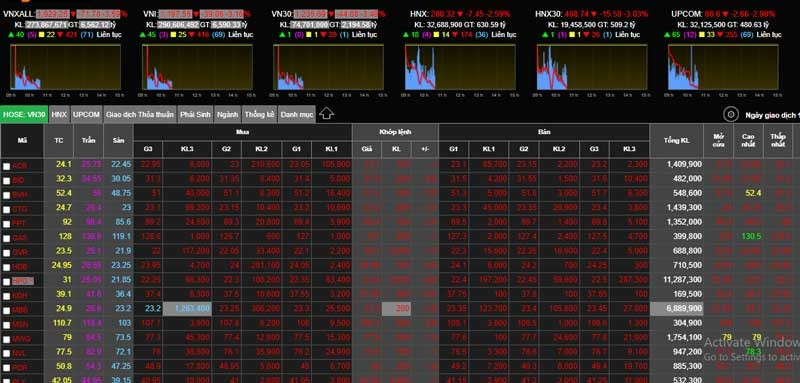 Đa số các cổ phiếu tiếp tục giảm mạnh, trong đó gần như toàn bộ các cổ phiếu nhóm VN-30 giảm giá, khiến chỉ số VN-Index có lúc rớt 34 điểm về dưới ngưỡng 1.200 điểm.
