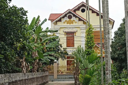 Căn biệt thự này tọa lạc giữa cánh đồng làng tại xã Song Giang, huyện Gia Bình, Bắc Ninh. Ngôi nhà có quy mô lớn, được xây dựng theo phong cách nhà vườn châu Âu, có tầng hầm, cổng và tường rào ốp đồng.