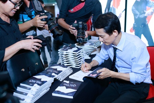 Ngay tại buổi ra mắt phim "Vĩnh cửu" đạo diễn Trần Anh Hùng đã ngồi ký tặng sách cho người hâm mộ. |