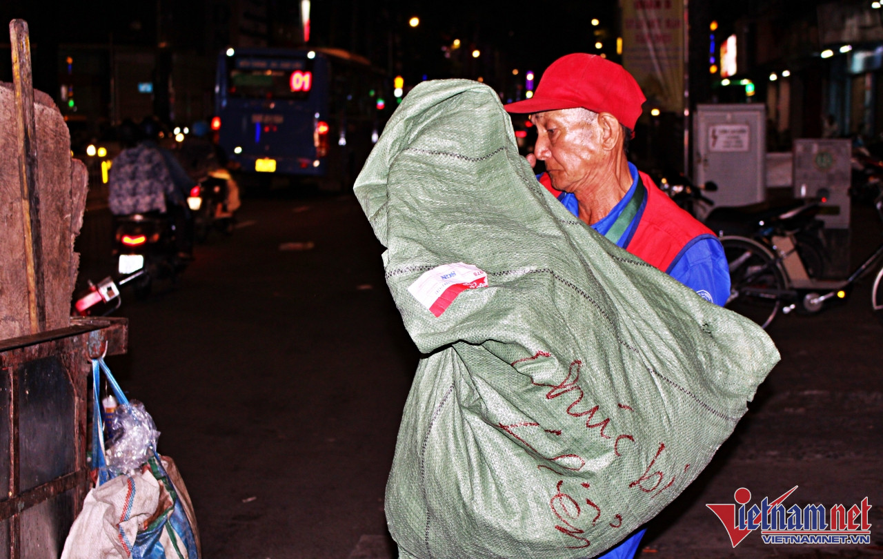 Ngày cuối năm, thành phố lên đèn thật sớm. Khi mọi nhà quây quần bên nhau, hàng quán chật kín khách, ông Tống Văn Thơm (75 tuổi, TP.HCM) và vợ Nguyễn Ngọc Đào (68 tuổi) lại kéo xe ba gác đi thu gom rác sinh hoạt.