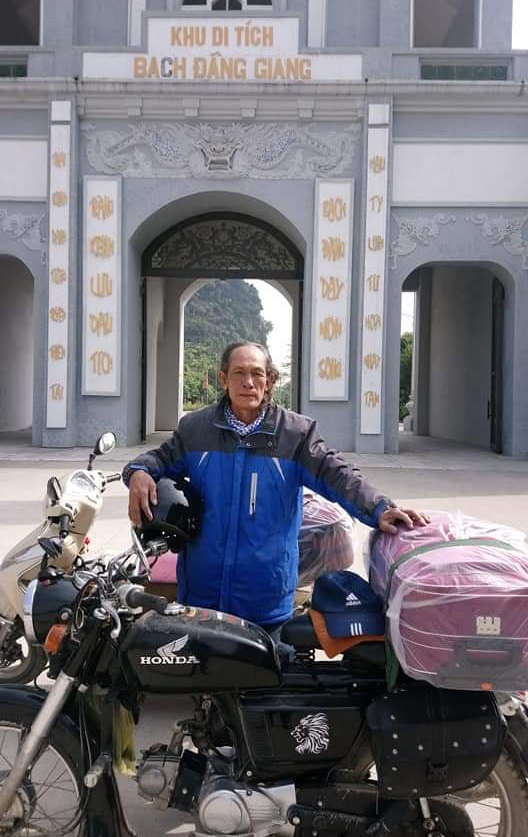 | Ông Huỳnh Bá Văn (58 tuổi) đam mê những chuyến phượt bằng xe máy. |
