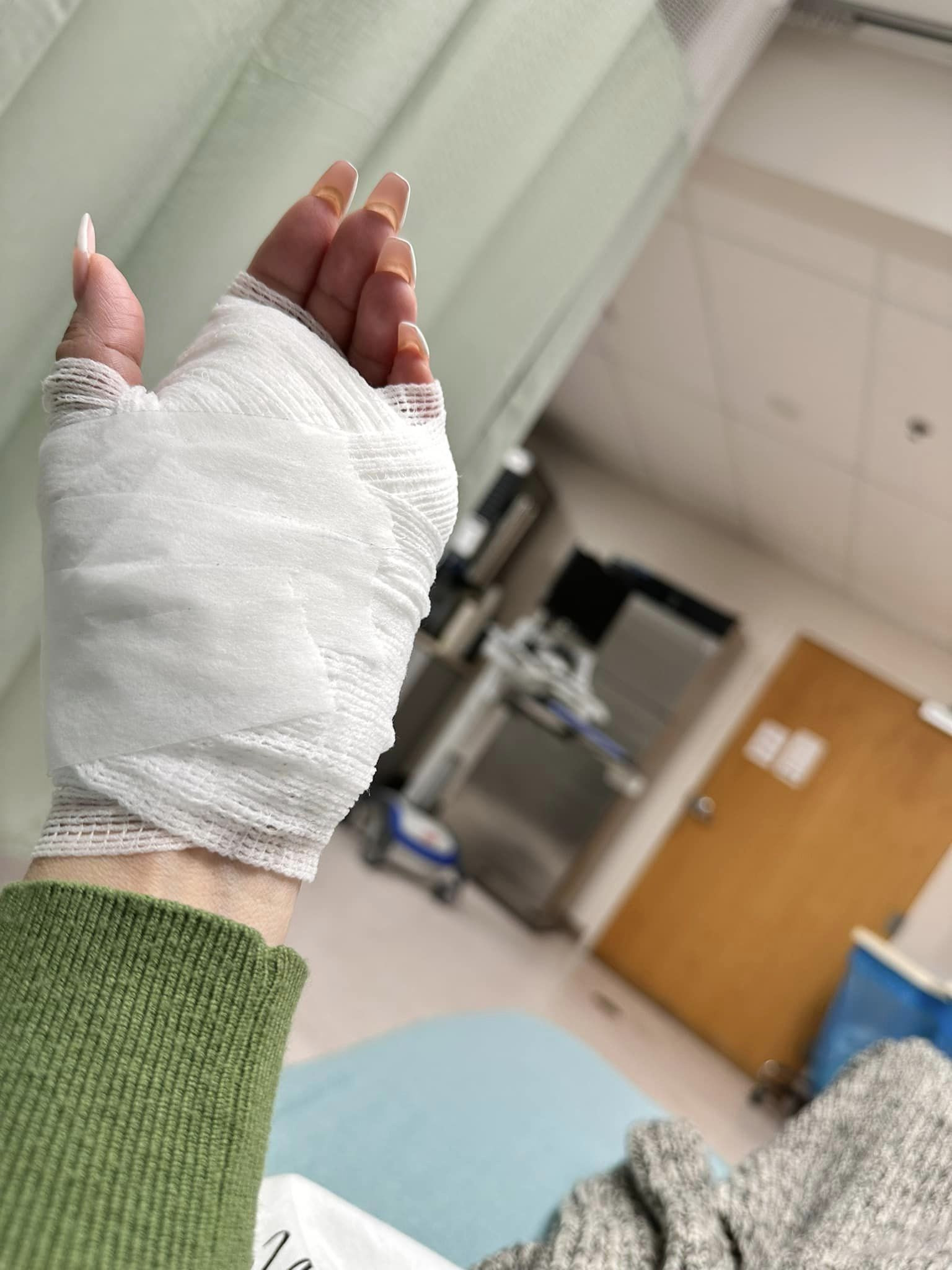 Bác sĩ cho biết vết cắt sâu, cần phải khâu lại. Sau khi kiểm tra và thấy các ngón tay vẫn cử động được, bác sĩ đã tiêm thuốc tê. Khâu được nửa chừng, bác sĩ ngừng tay và thông báo nhìn thấy gân nên muốn tôi vào cấp cứu tại bệnh viện lớn để kiểm tra tình trạng".