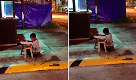 Bức ảnh bé trai vô gia cư tận dụng ánh đèn hắt ra từ nhà hàng McDonald để làm bài tại một bãi đỗ xe ở Philippines đang khiến cư dân mạng "nổi sóng".