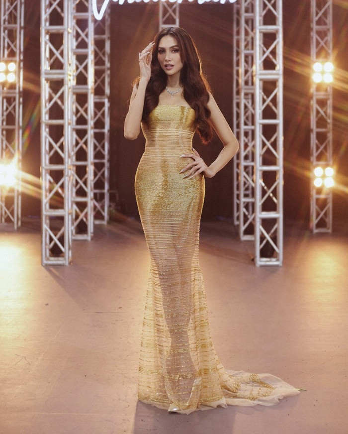 Võ Hoàng Yến quyến rũ diện đầm ánh kim, Minh Tú mặc đồ hở bạo với thiết kế khoe nguyên khoảng ngực và bụng.